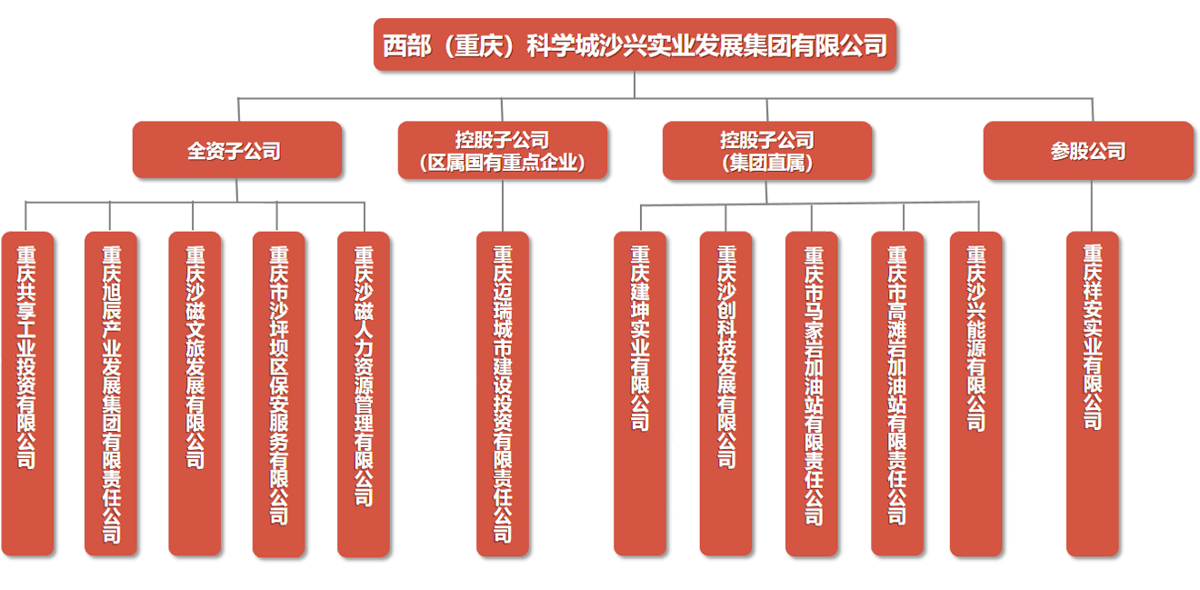 西部(重庆)科学城沙兴实业发展集团有限公司(以下简称“沙兴集团公司”)由重庆市沙坪坝区国有资产监督管理委员会全额出资,于2022年1月21日成立,是沙坪坝区区属重点国有独资企业,注册资本金30亿元,资产规模约1026亿元(截至2022年9月底)。2022年7月,公司成功获评AA+主体信用评级,评级展望为稳定。目前拥有子公司10个(工投公司、城投公司、旭辰公司、保安公司、沙磁人力资源公司、沙磁文旅公司、沙创科技发展公司(集团公司直管)、马家岩加油站公司(集团公司直管)、高滩岩加油站公司(集团公司直管)、建坤公司(集团公司直管)),正在接收直管子公司2个(华世工贸公司、天马加油站公司);参股公司1个(祥安公司)。 沙兴集团公司定位为“沙坪坝区国有资本投资管理和产业发展运营商”。主要职责为:聚焦资产运营、产业发展、投融资三大业务版块,承担股权投资、产业投资、金融服务、债务管理、资本运作、国有资产盘活及运营等职能,充分发挥国有资本在产业布局、结构调整中的支撑引领作用,提高国有资本收益,保障国有资产保值增值,助推经济高质量发展;承担沙坪坝区现代服务业招商引资工作,促进沙坪坝区现代服务业做大做强。 |